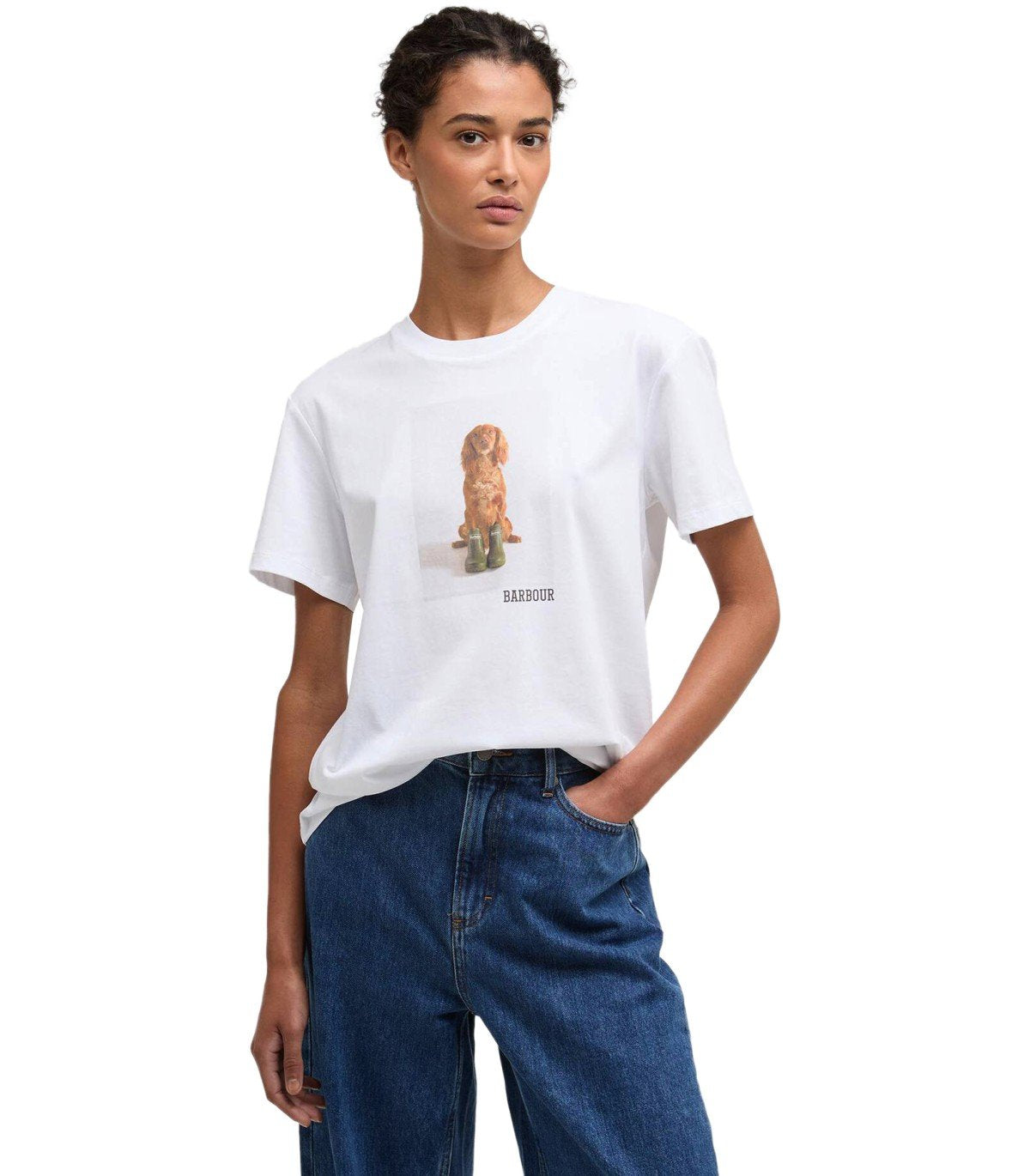 Barbour Bedale T-Shirt aus weißer Baumwolle. Print auf der Vorderseite, Regular Fit.