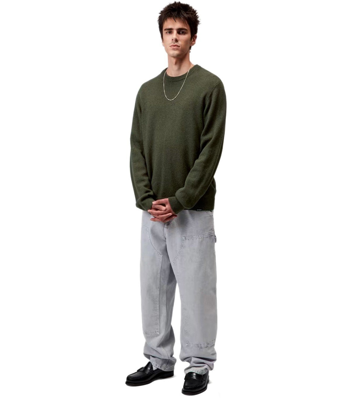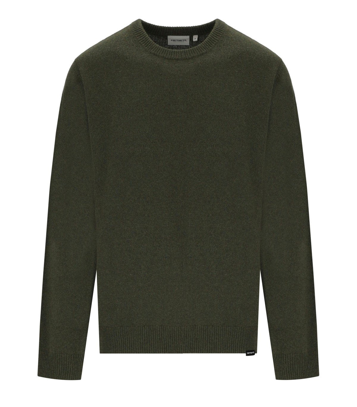 Alten Pullover von Carhartt Wip, gefertigt aus einem Wollmischgewebe in Grüntönen. Er verfügt über einen gerippten Kragen, Saum und Bündchen in passenden Farbtönen. Etikett mit Logo am Saum. Reguläre Passform.