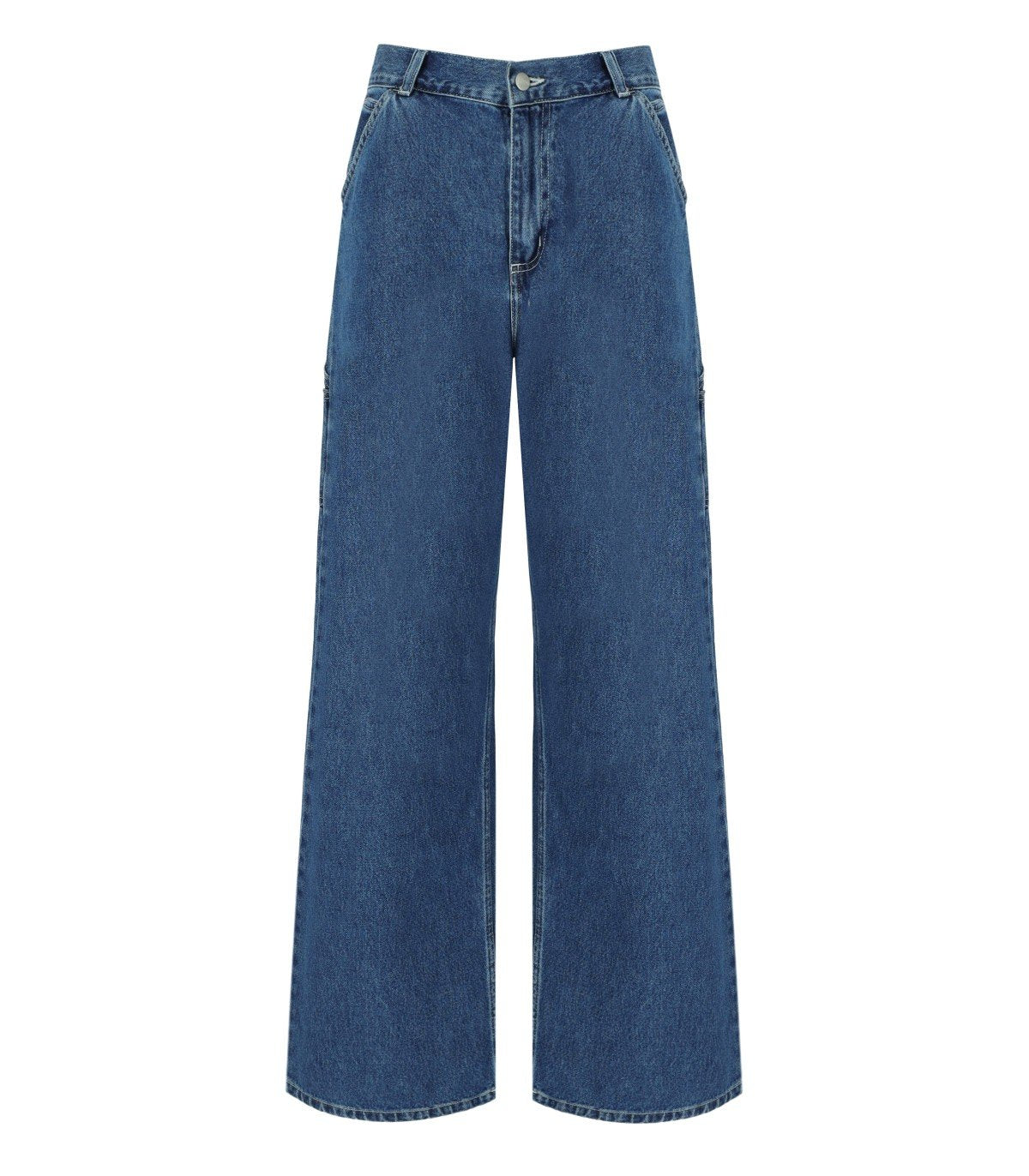 Jean von Carhartt Wip, gefertigt aus mittelgewaschenem Baumwoll-Denim. Hohe Taille, weit geschnittenes Bein, Fünf-Taschen-Design mit Logo-Patch auf der Rückseite. Reißverschluss und Knopfverschluss.