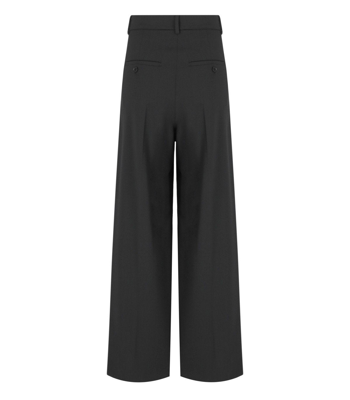 Max Mara Weekend Asta Hose aus einer Wollmischung in Schwarztönen. Mit einem taillierten Schnitt mit weitem Bein und Falten versehen, verfügt sie über seitliche und rückseitige Taschen. Hakenverschluss, bequeme Passform.