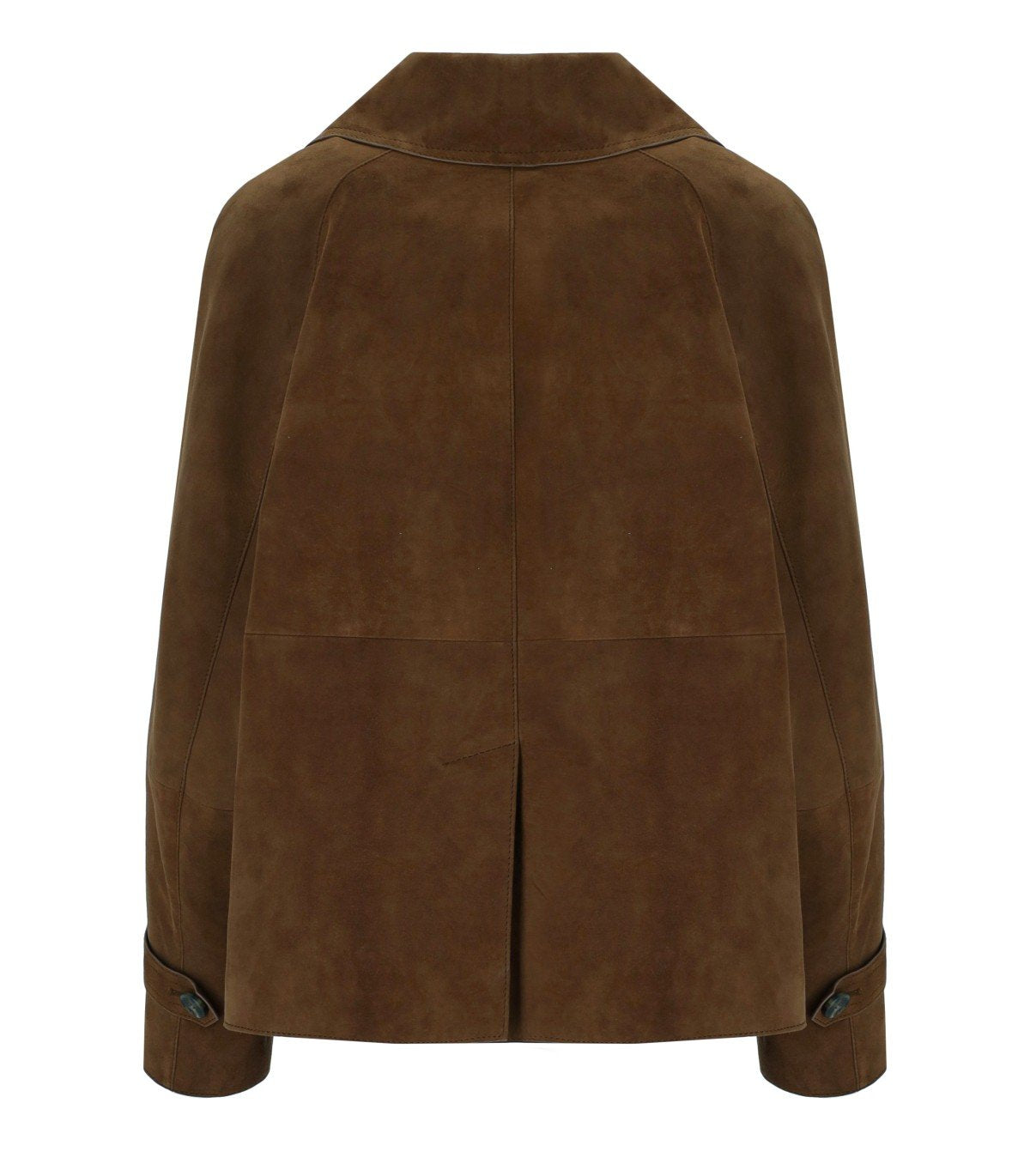 Max Mara Weekend Sospiro Jacke aus beigefarbenem Wildleder. Gefüttert, mit zweireihigem Frontverschluss, Reverskragen und Riegeln an den Ärmelabschlüssen. Ausgestattet mit seitlichen Taschen und einem mittigen Rückenschlitz. Bequeme Passform.