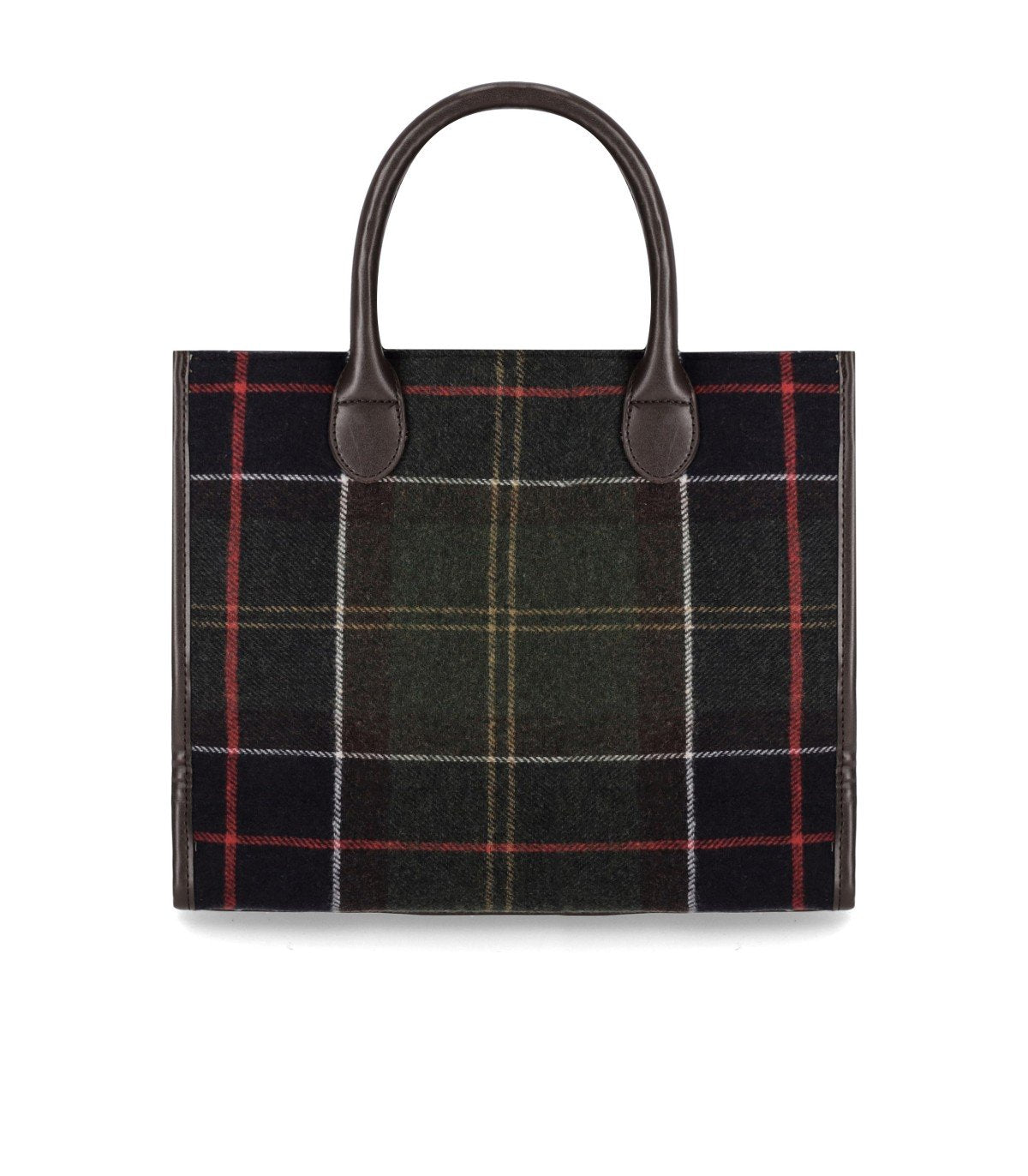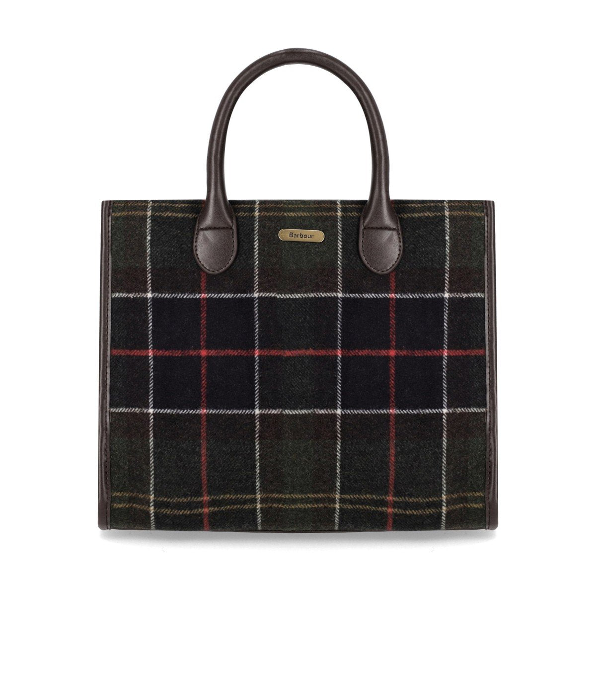 Die BARRHILL-Tasche von Barbour ist aus technischem Gewebe und Wolle gefertigt und zeigt das ikonische Tartan-Muster in Grün-, Braun-, Weiß- und Rottönen. Sie ist vollständig gefüttert und verfügt im Inneren über ein Doppelhauptfach, eine mittlere Tasche sowie eine seitliche Reißverschlusstasche mit Markenlogo. Die Tasche hat zwei feste Griffe aus braunem Leder und einen Magnetknopfverschluss. Ein Schulterriemen ist im Lieferumfang enthalten, sodass die Tasche sowohl über der Schulter als auch als Umhängetasche getragen werden kann. Maße: 33 x 27 x 10,5 cm.
