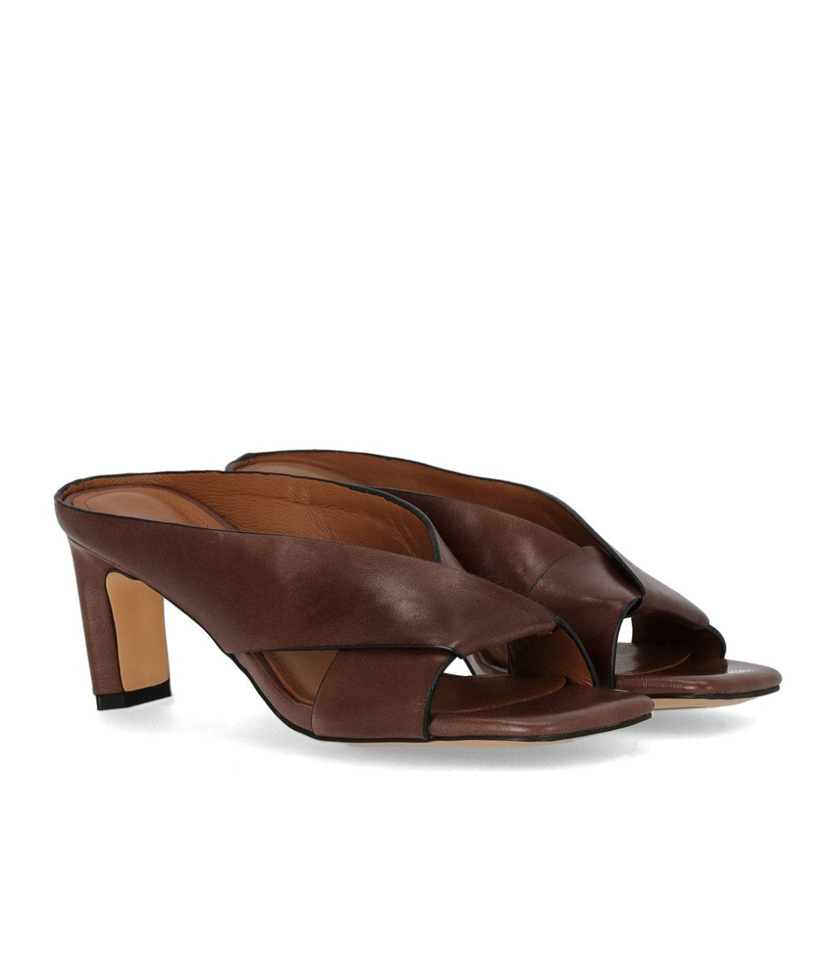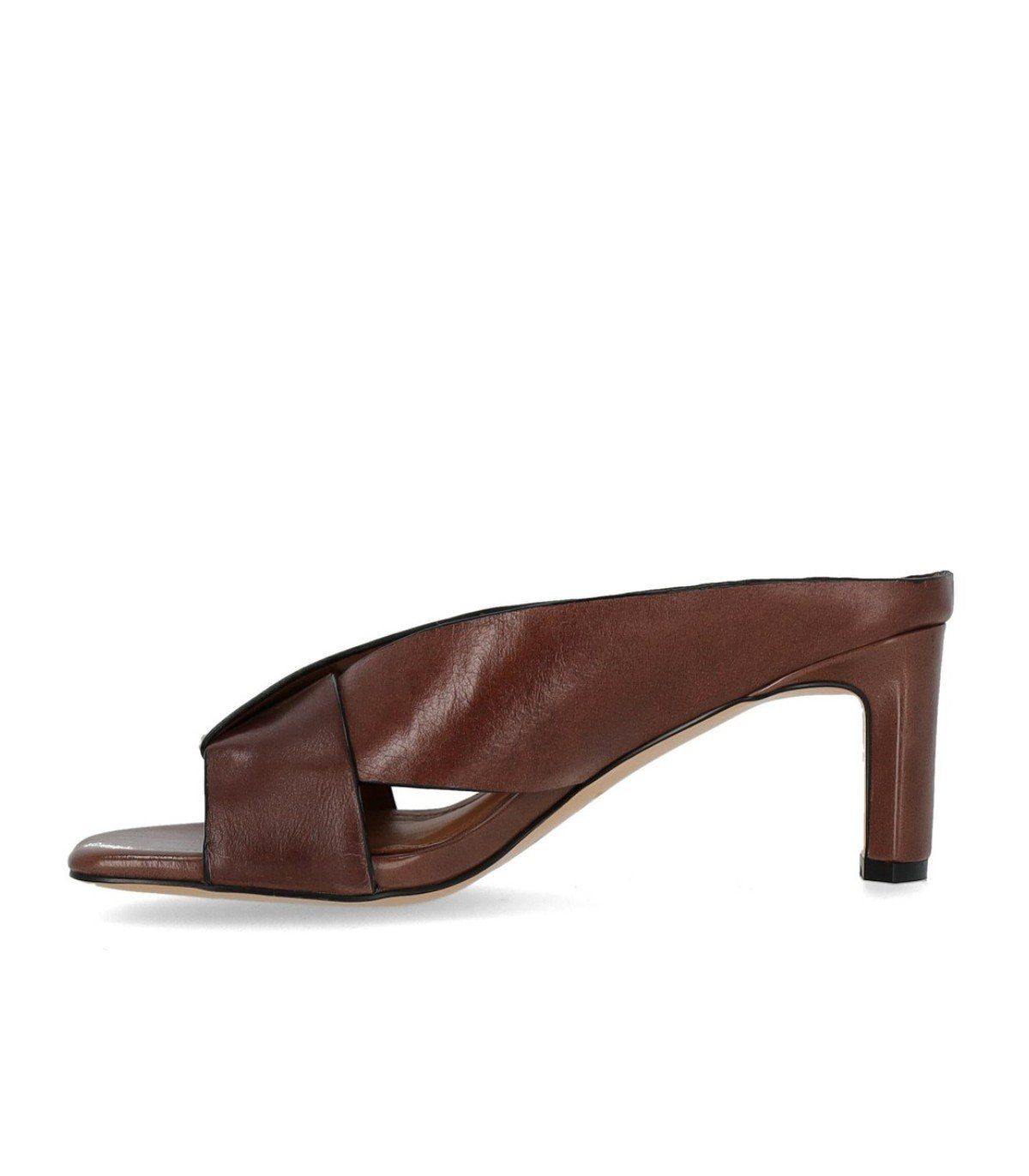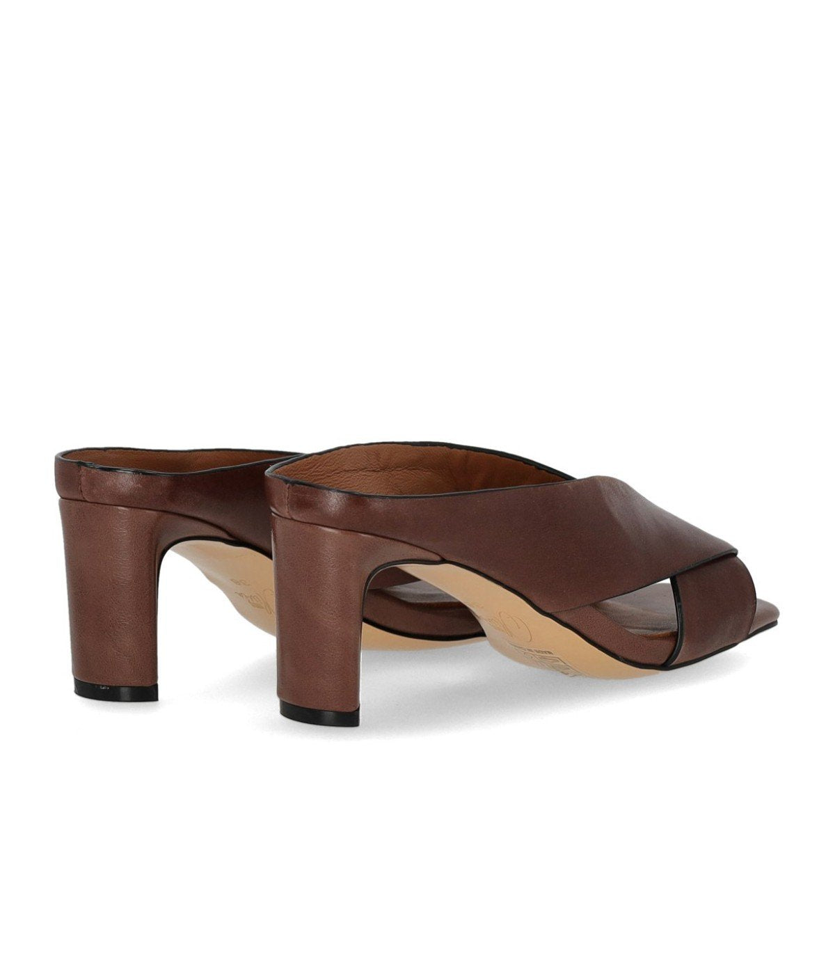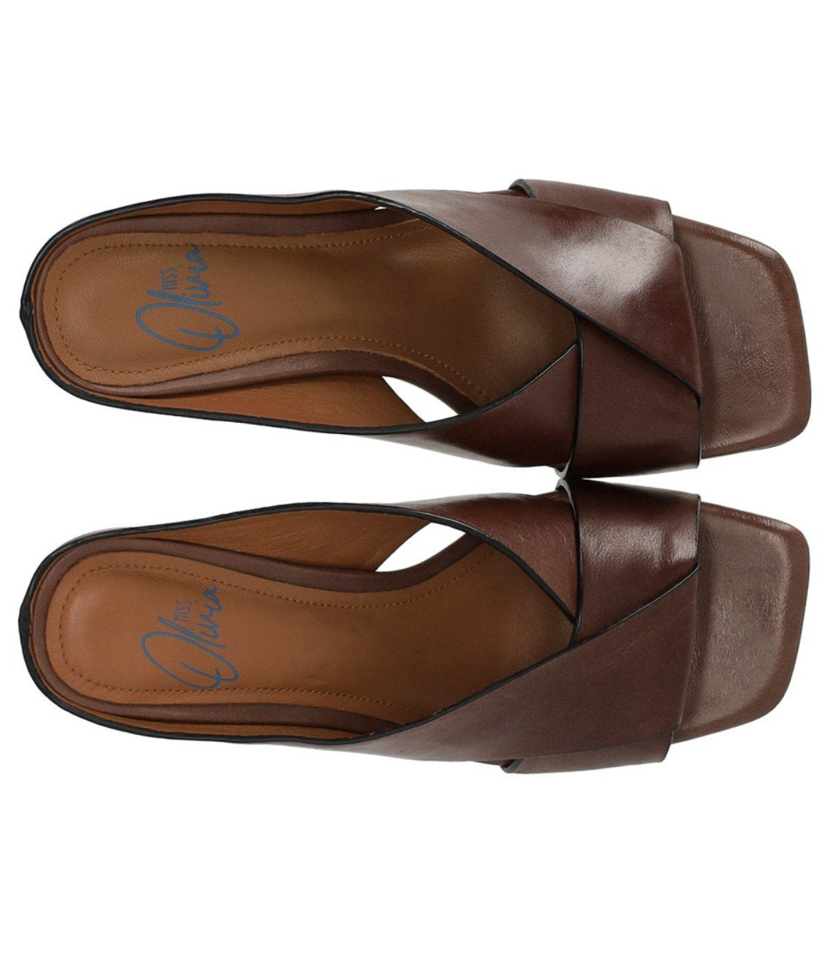 Miss Olivia Linda mule is crafted from brown leather. It features a square toe and a crossover upper. The lining and insole are made of soft leather. Rubber sole. Heel height: 6 cm.