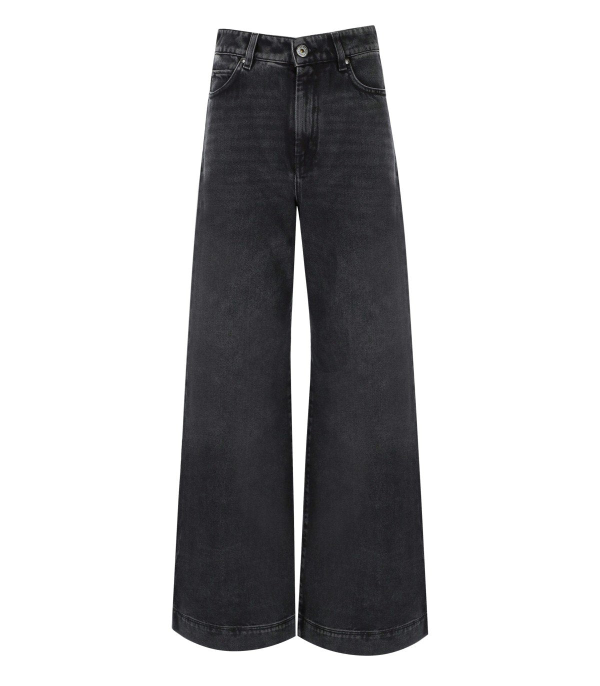Cactus1234 Jeans by Max Mara Weekend made from washed black cotton denim. Featuring belt loops, five pockets, and a zip and branded button closure. Finished with a logo label on the back. Wide leg.