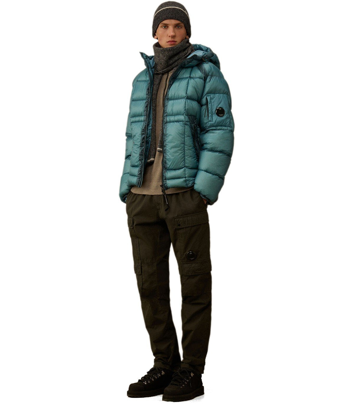 C.P. COMPANY D.D.-SHELL AEGEAN BLUE HOODED DOWN JACKET