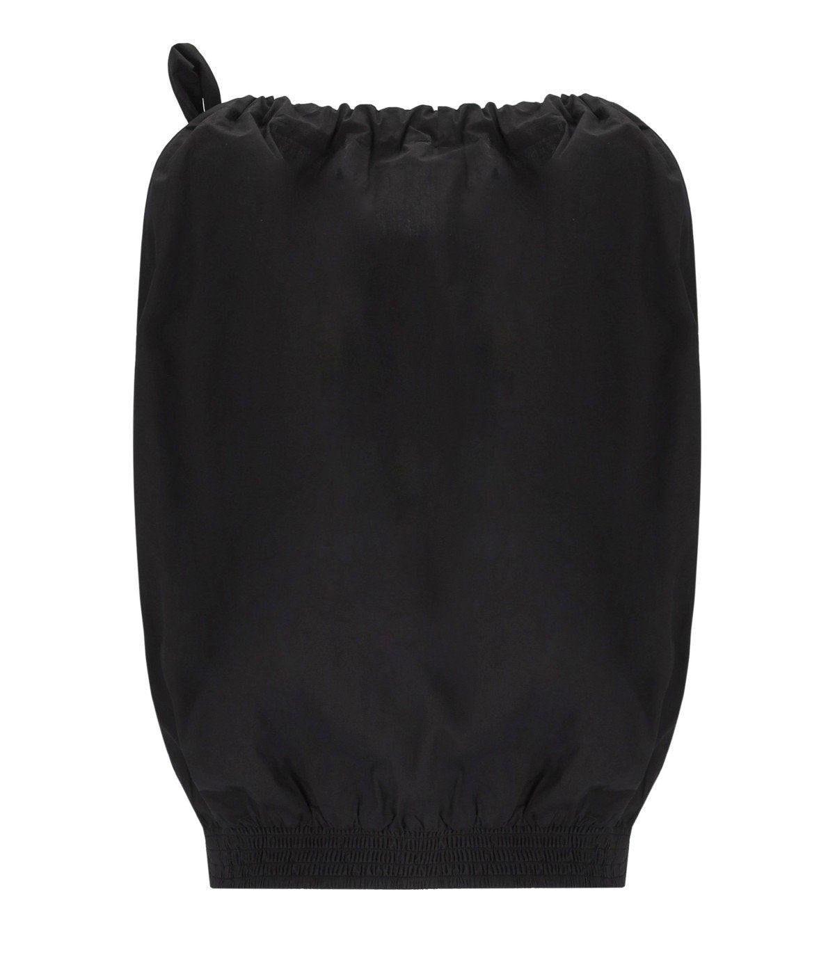 Essentiel Antwerp Jaylah top made of black cotton. It features an asymmetrical neckline and a self-tie drawstring. Smocked hem and an oversized fit.