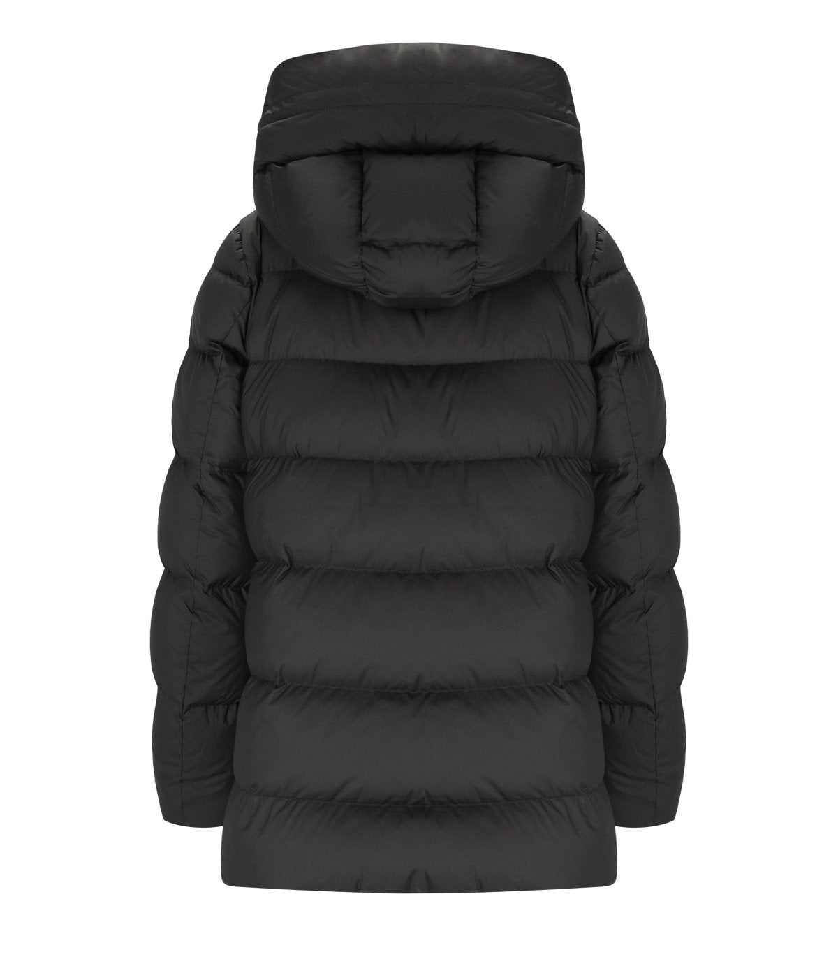 Add padded jacket made of water-repellent polyester in black tones. Equipped with an adjustable hood and front zip closure. Features an internal cellphone pocket and welt pockets with button on the front, one of which is branded Add. Side zip and adjustable hem. Lined and padded. Oversized fit.