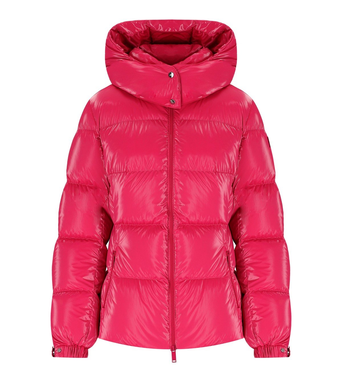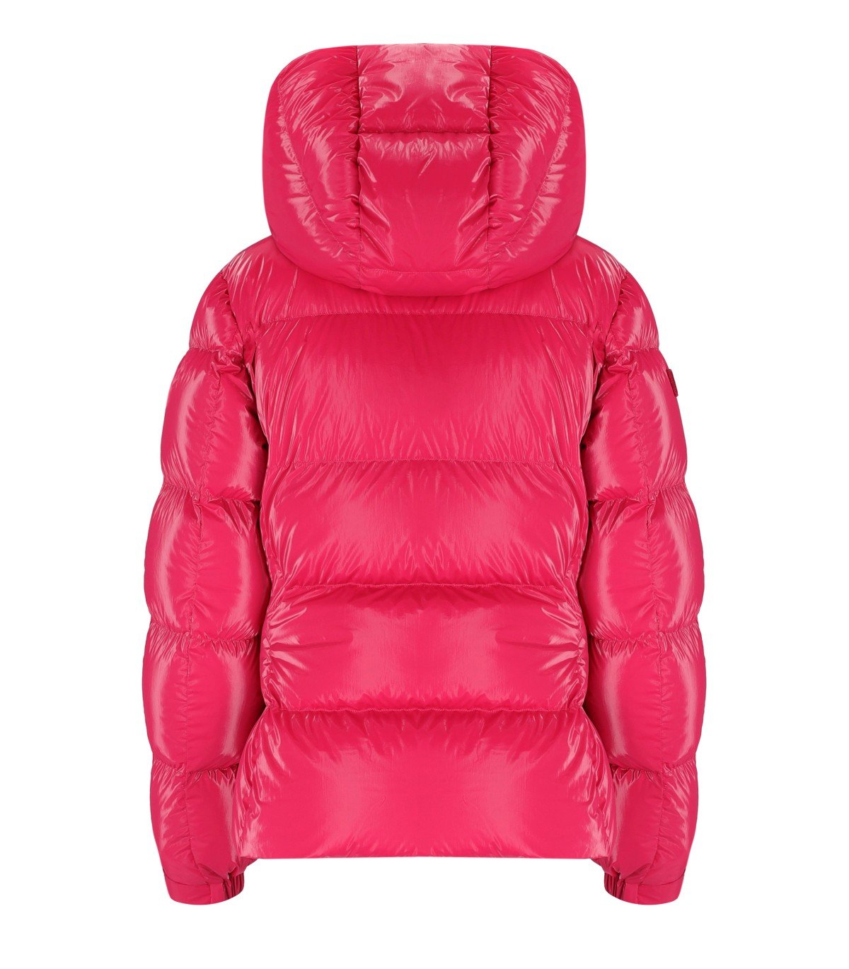 Down jacket by Add made of water-repellent nylon in shades of fuchsia. Lined, it features a removable hood and front zip pockets. Elasticated cuffs with branded button. It has a front zip closure and a logo patch on the shoulder. Internal mobile phone pocket and branded elastic straps. Padded with warm down. Regular fit.