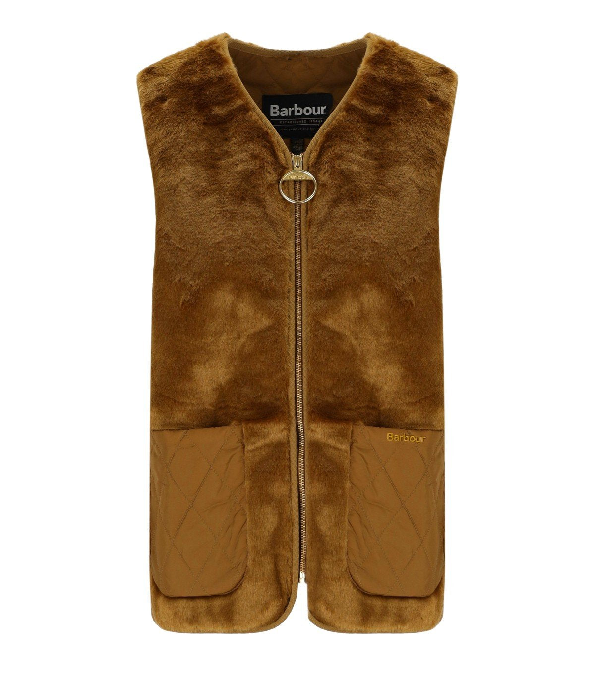 Barbour Karin gilet made of faux fur in shades of brown. It features a zip closure and a tone-on-tone quilted nylon lining. Equipped with two front pockets, one of which is branded. Relaxed fit.