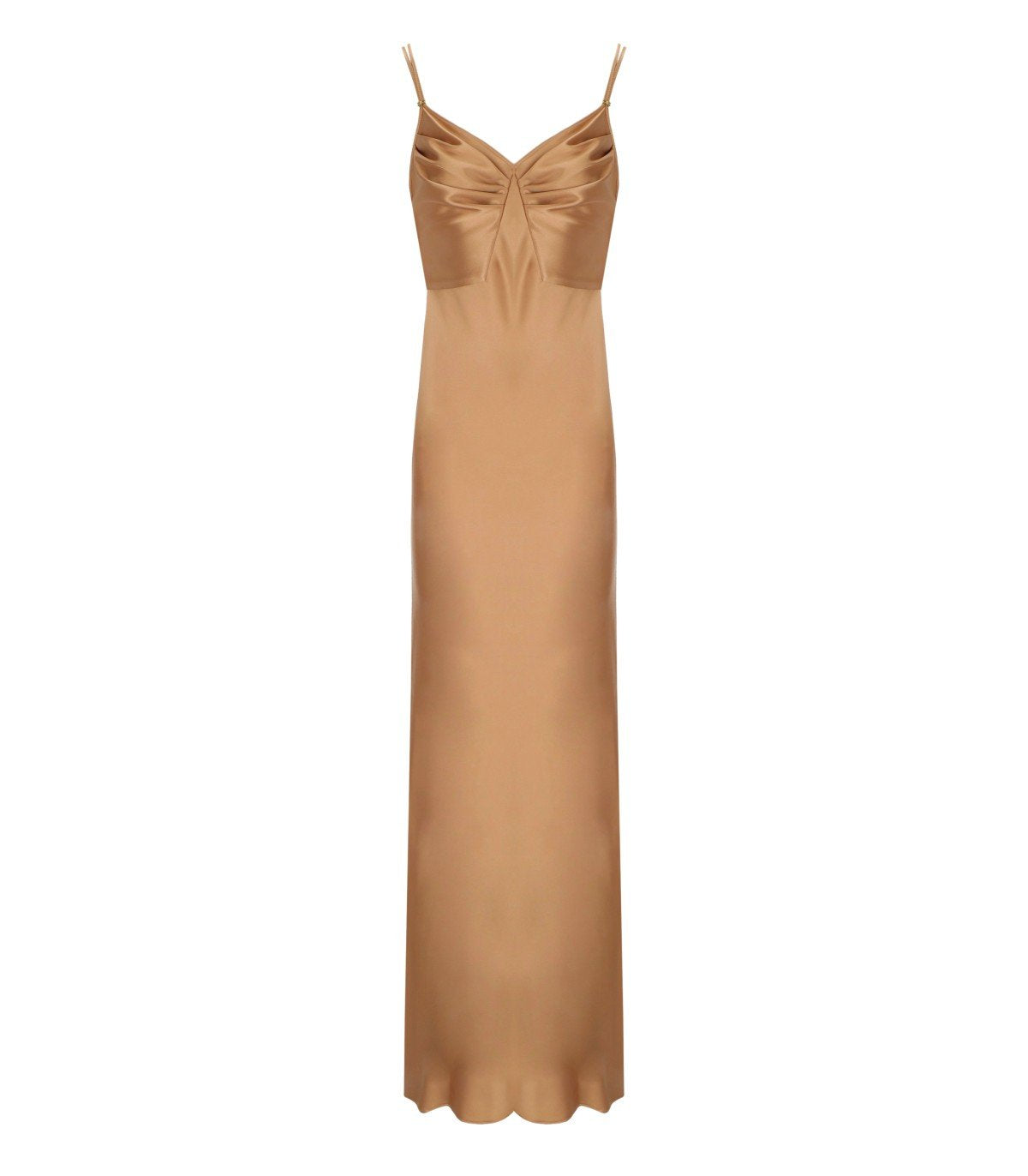 ELISABETTA FRANCHI RED CARPET BEIGE SATIN DRESS