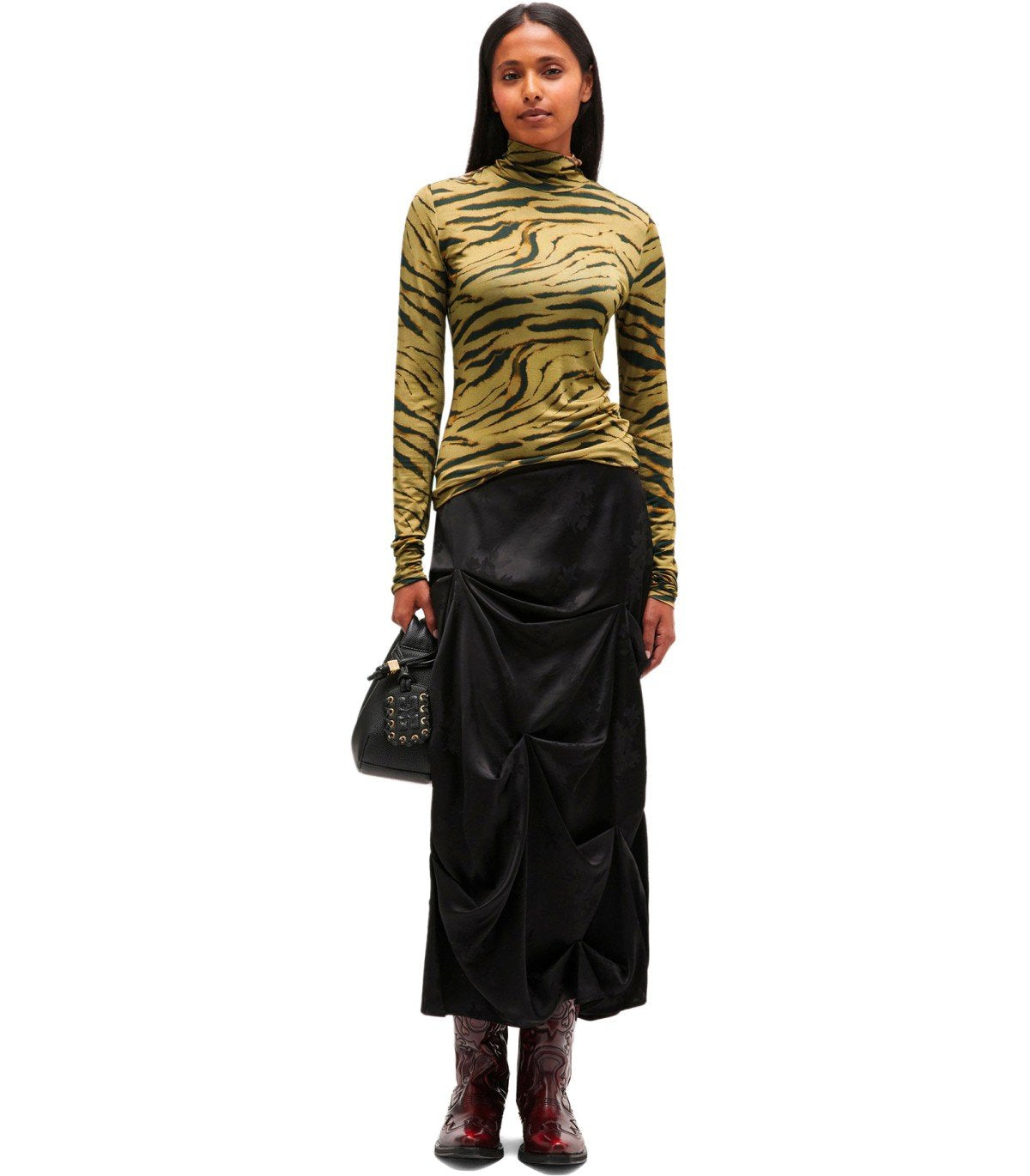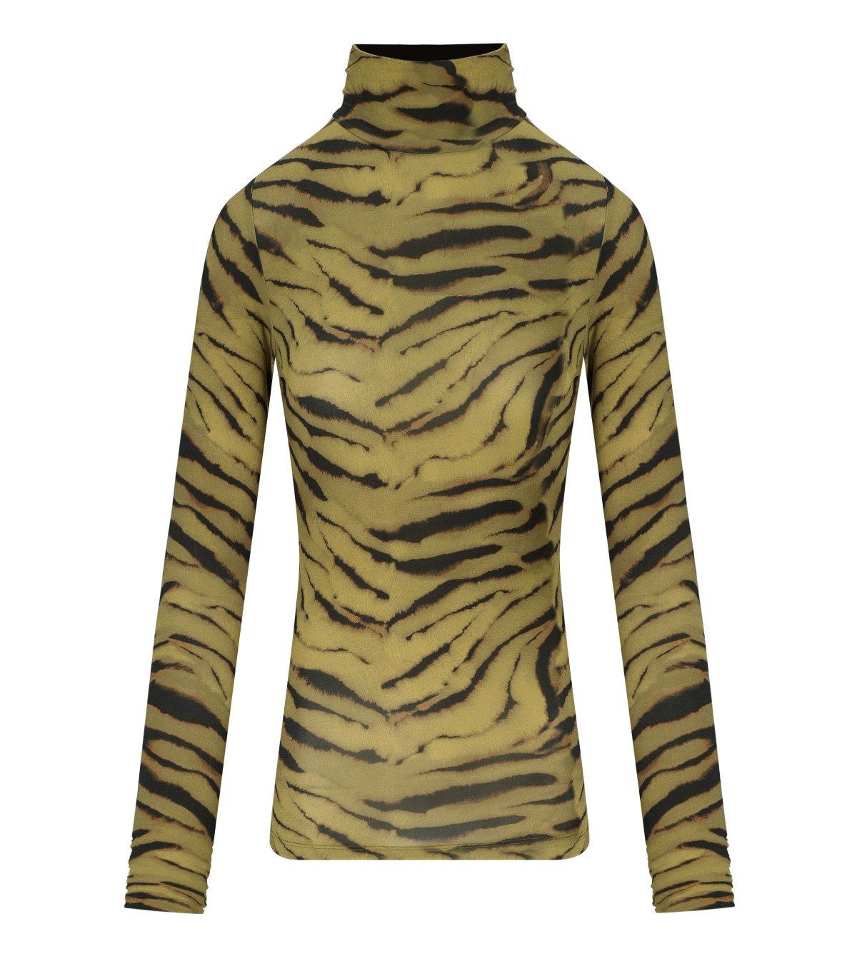 GANNI KHAKI ZEBRA PRINT TURTLENECK TOP