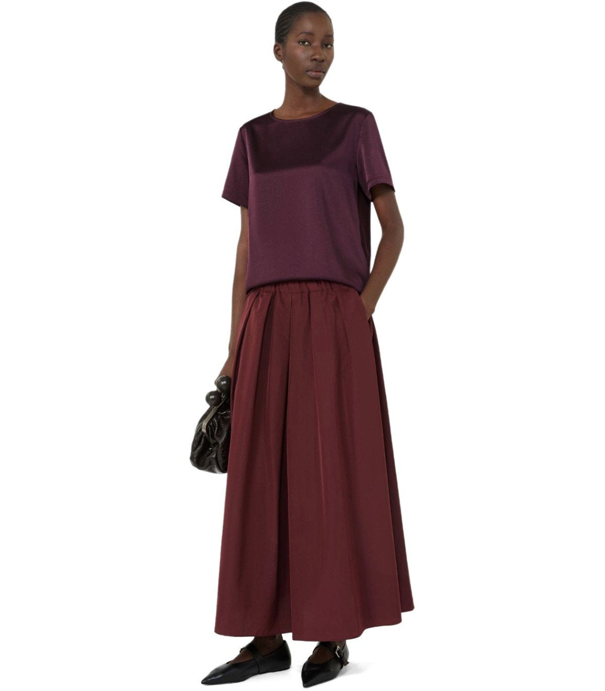 Max Mara Weekend Zona blouse made with burgundy satin on the front and lyocell on the back. Round neckline with a keyhole opening and small button at the back. Relaxed fit.
