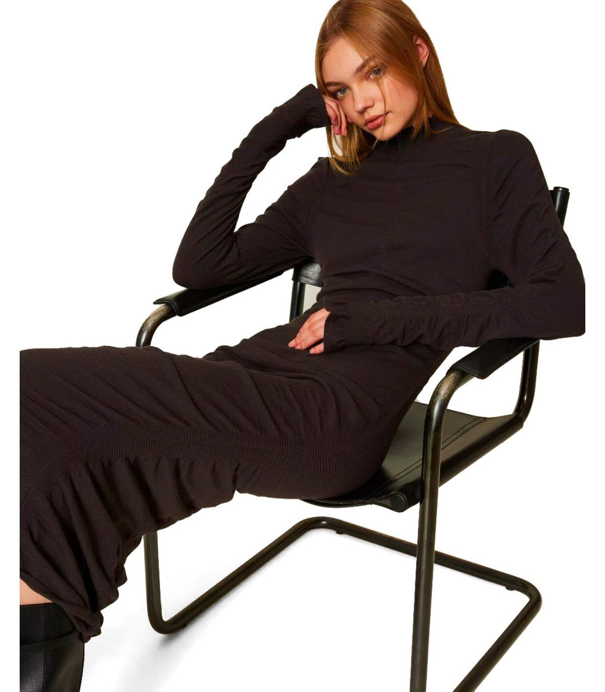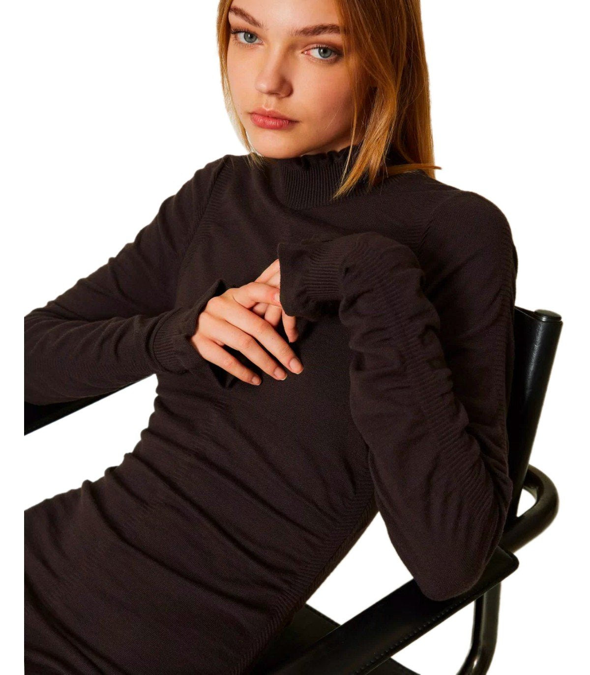 TWINSET CHOCOLATE KNITTED MIDI DRESS
