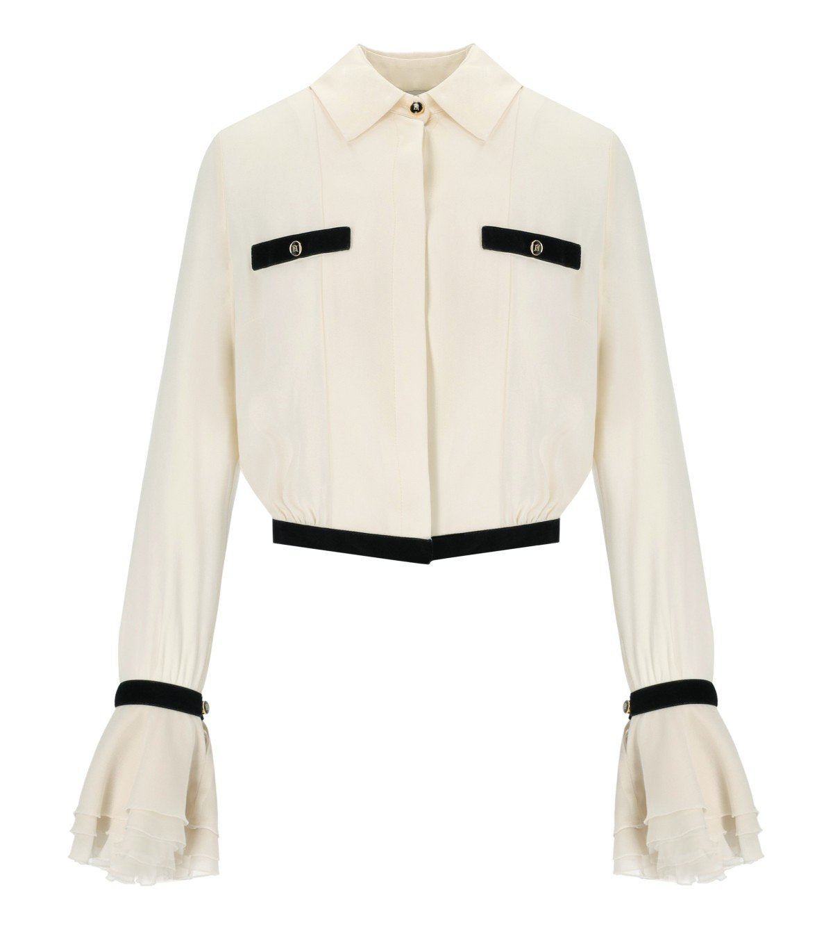 Camisa Elisabetta Franchi confeccionada en georgette de viscosa. Detalles en contraste y mangas con volantes, cierre de botones oculto. Corte entallado.