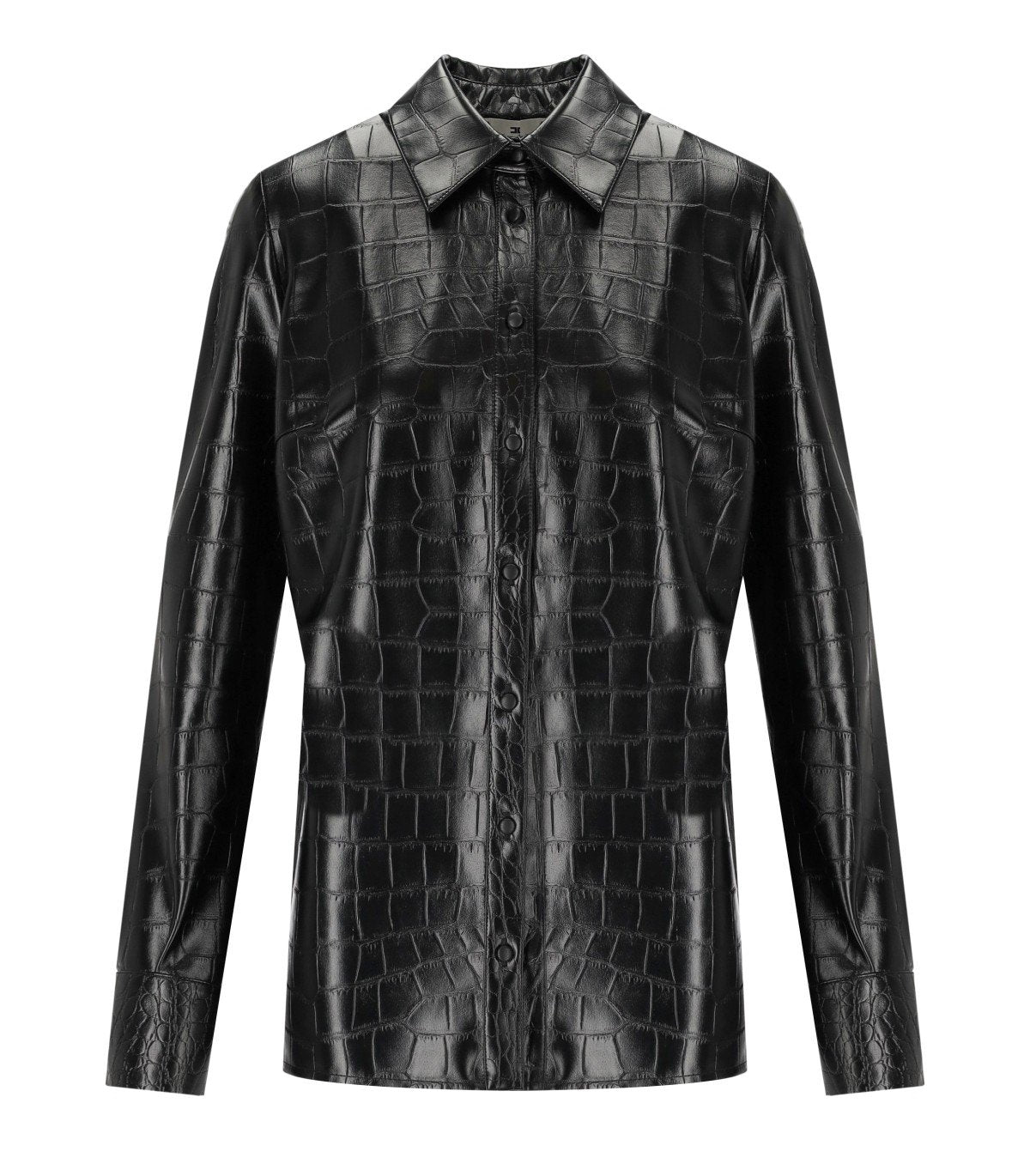 Camisa de Elisabetta Franchi confeccionada en tejido sintético efecto cuero con estampado de cocodrilo, cierre de botones. Corte entallado.