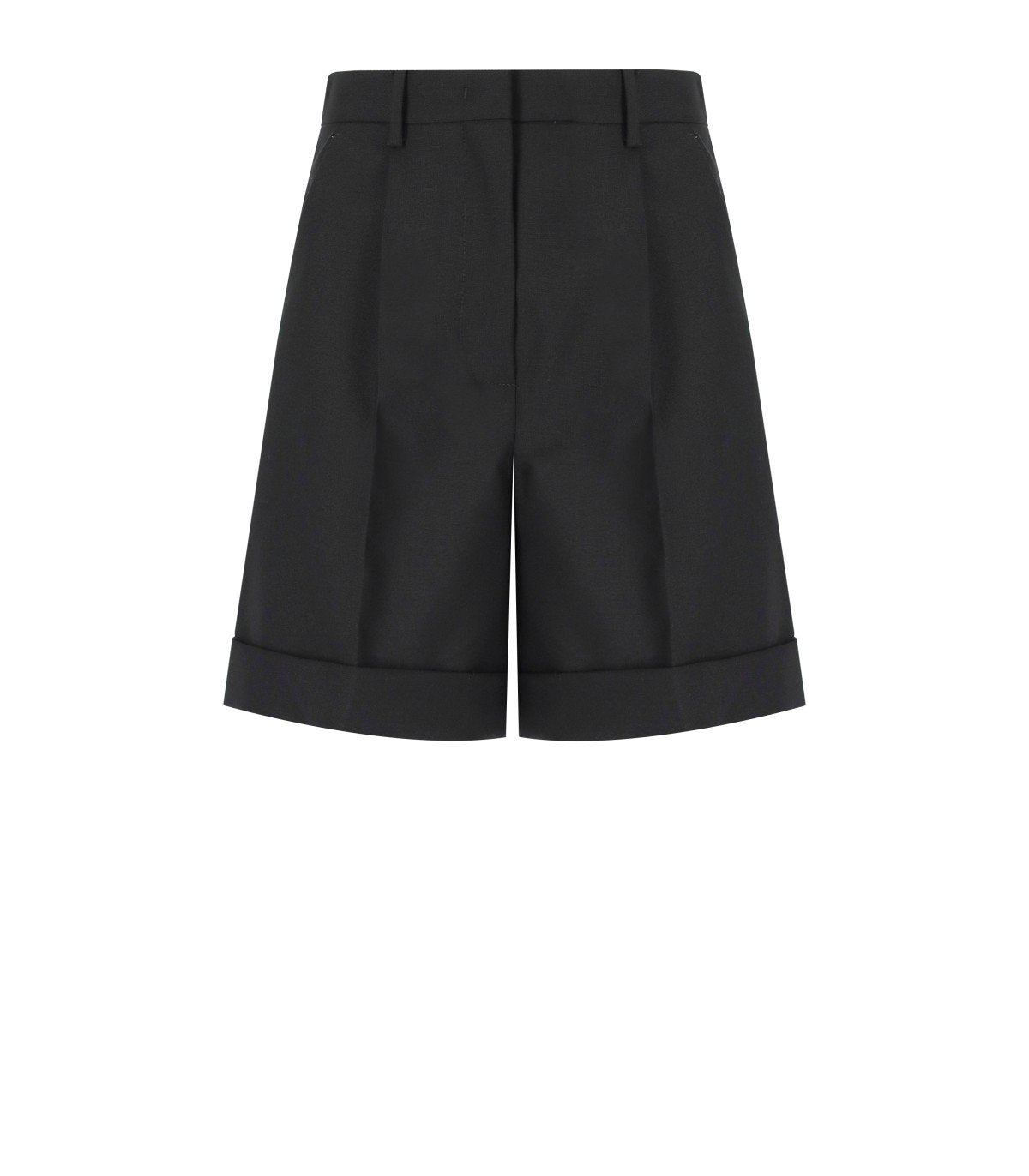 Bermuda Bussola1234 de Max Mara Weekend confeccionada en lona de pura lana virgen en tonos negros. Presenta bajos vueltos, trabillas para cinturón y cierre con cremallera y gancho metálico. Dispone de bolsillos franceses en la parte delantera y bolsillos de ojal con botón en la parte trasera. Corte regular.