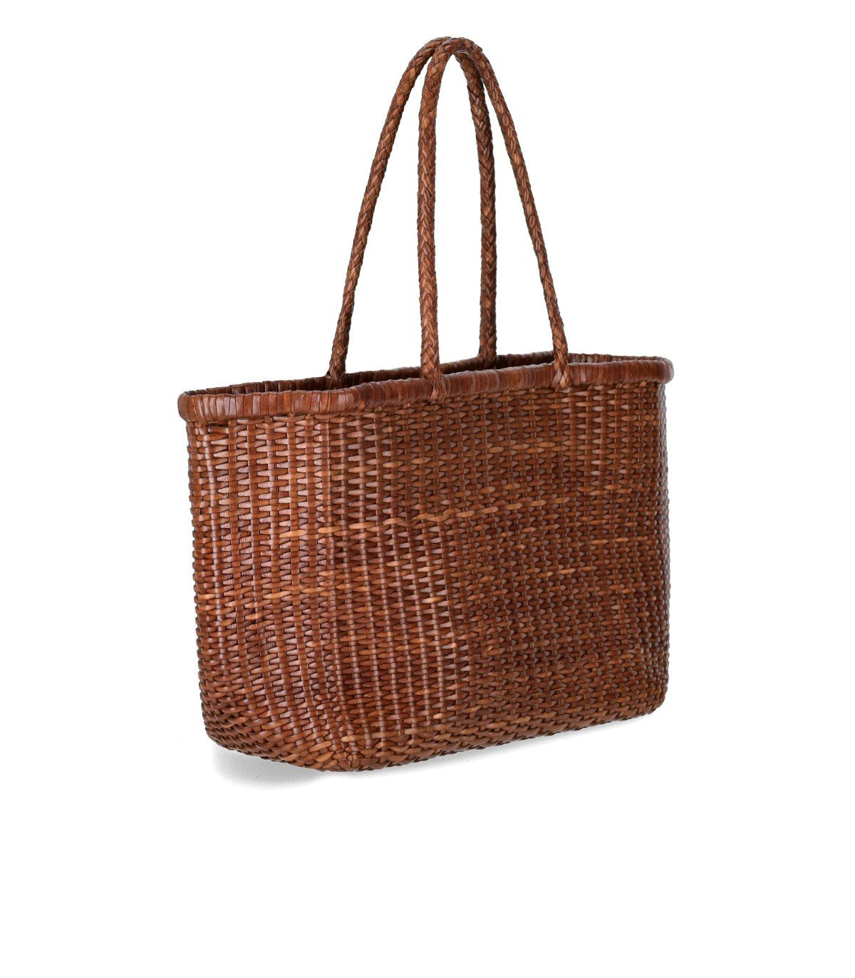 Sac Weave Big de Dragon Diffusion, confectionné en cuir avec motif tressé de couleur fauve. Il présente une silhouette structurée aux lignes droites. Sans doublure, avec double anse et bordure au niveau de l’ouverture. Étiquette intérieure en cuir avec logo. Dimensions : 33 x 26 x 15 cm.