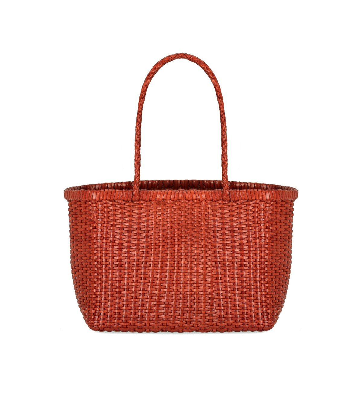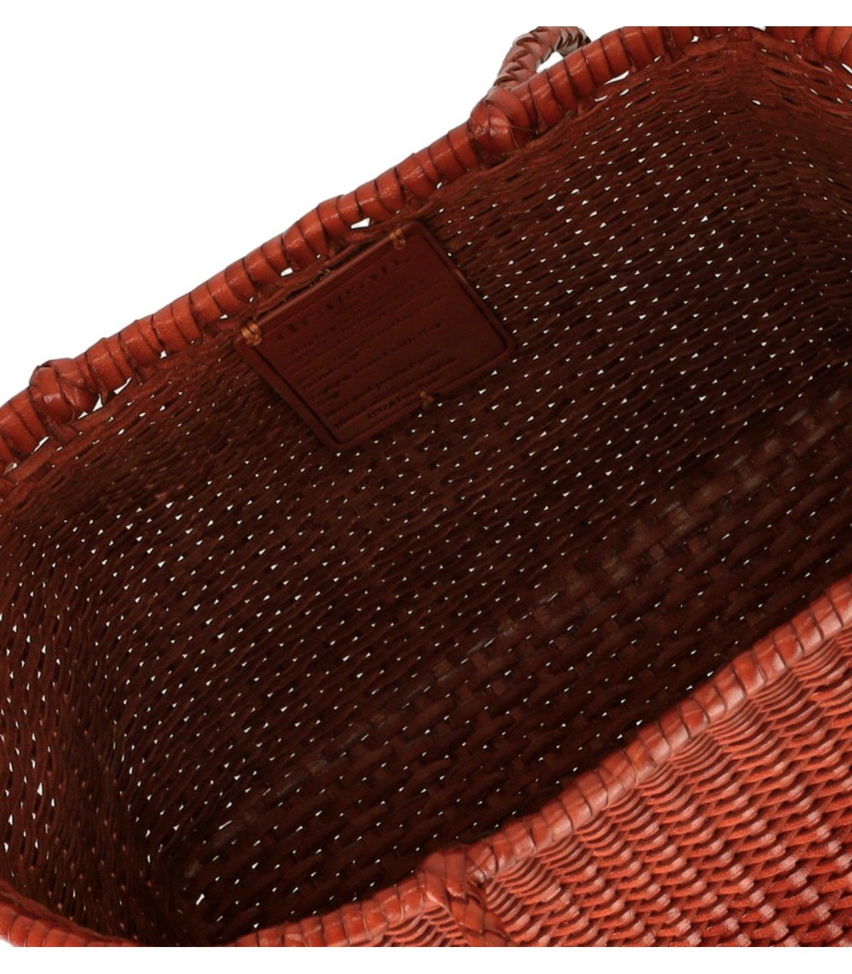 Sac Weave Small Dragon Diffusion, confectionné en cuir avec un motif tressé dans des tons orangés. Non doublé, il présente une bordure au niveau de l’ouverture et une double anse. Silhouette structurée de type boîte. À l’intérieur, une étiquette en cuir avec le logo et un médaillon de Saint-Christophe. Dimensions : 25 x 21 x 15 cm.