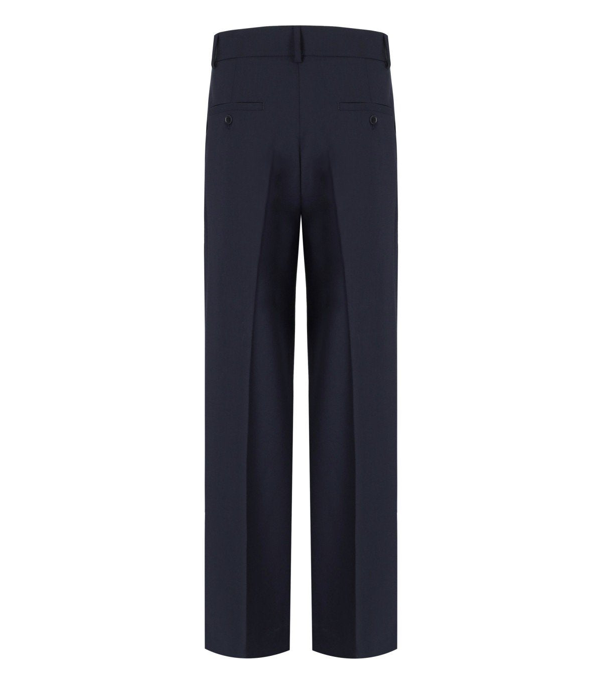 Pantalon Visivo de Max Mara Weekend confectionné en laine vierge dans des tons bleus. Il présente une jambe droite, un pli marqué et des poches latérales inclinées. Il est doté de passants de ceinture, d’une fermeture zippée et d’une agrafe, ainsi que de poches arrière passepoilées avec bouton. Coupe confortable.