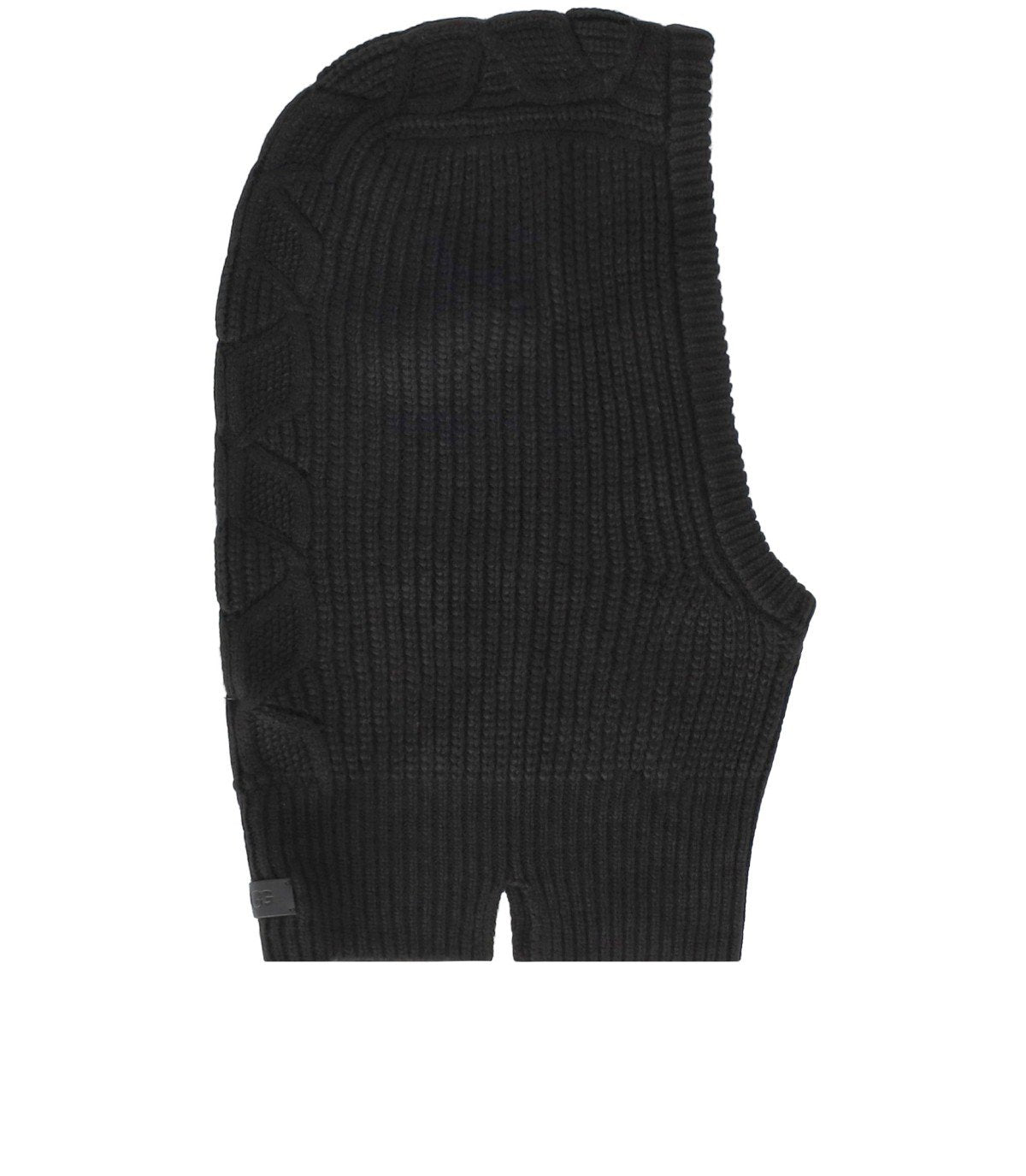 Balaclava Ugg avec un motif torsadé, confectionnée dans un mélange d'acrylique et de laine dans des tons noirs, avec un tricot à côtes. Logo ton sur ton, peut également être portée comme une capuche.