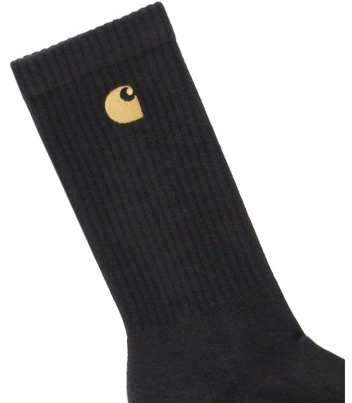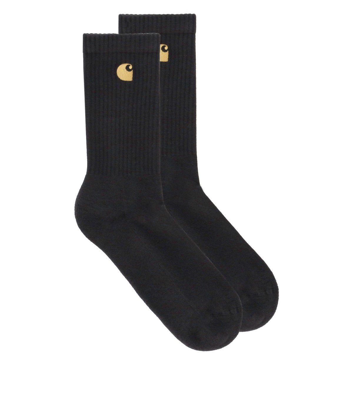 Calze Chase di Carhartt Wip realizzate in misto cotone stretch nero con interno in spugna. Riginitura a costine e logo oro ricamato.