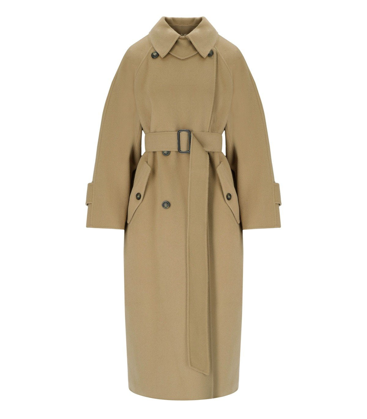 Cappotto Cadine di Max Mara Weekend realizzato in lana nella tonalità cammello. Presenta chiusura doppiopetto con bottoni e cintura con fibbia abbinata. Sfoderato, è dotato di maniche con alamari, cinturino sotto il colletto e tasche diagonali con patta e bottoni. Ampio spacco centrale sul retro. Vestibilità regolare.