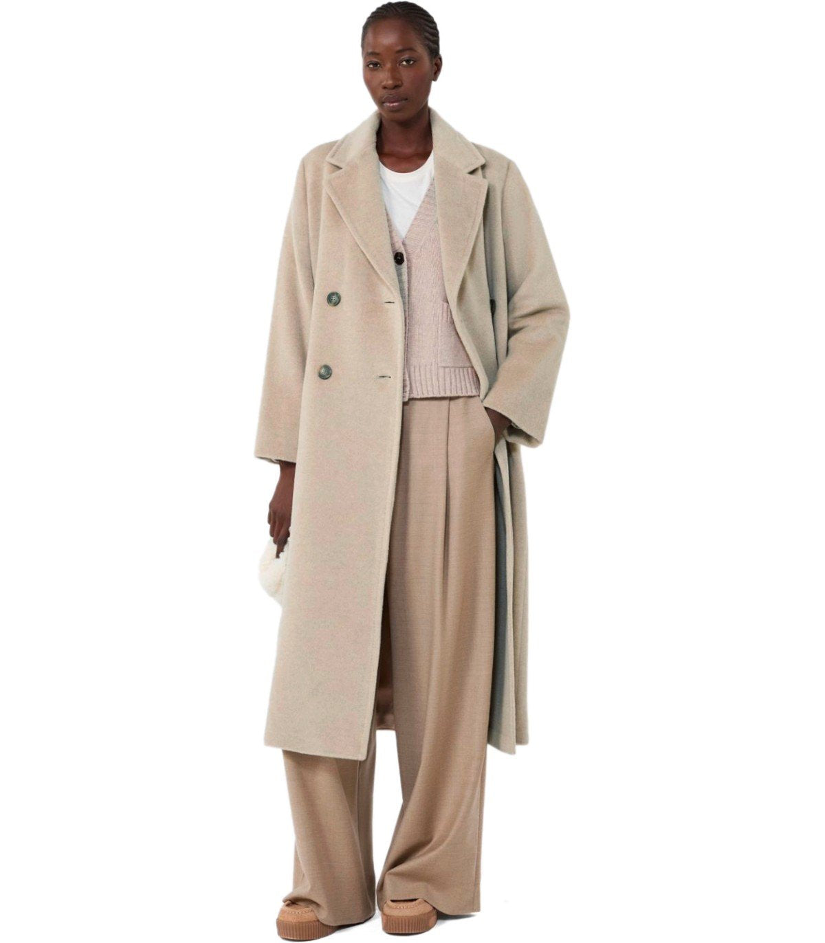 Cappotto Zufolo di Max Mara Weekend realizzato in misto lana nei toni del beige. Presenta collo a revers, chiusura doppiopetto con bottoni e ampie tasche a filetto sul davanti. Foderato. Spacco centrale sul retro. Vestibilità abbondante.