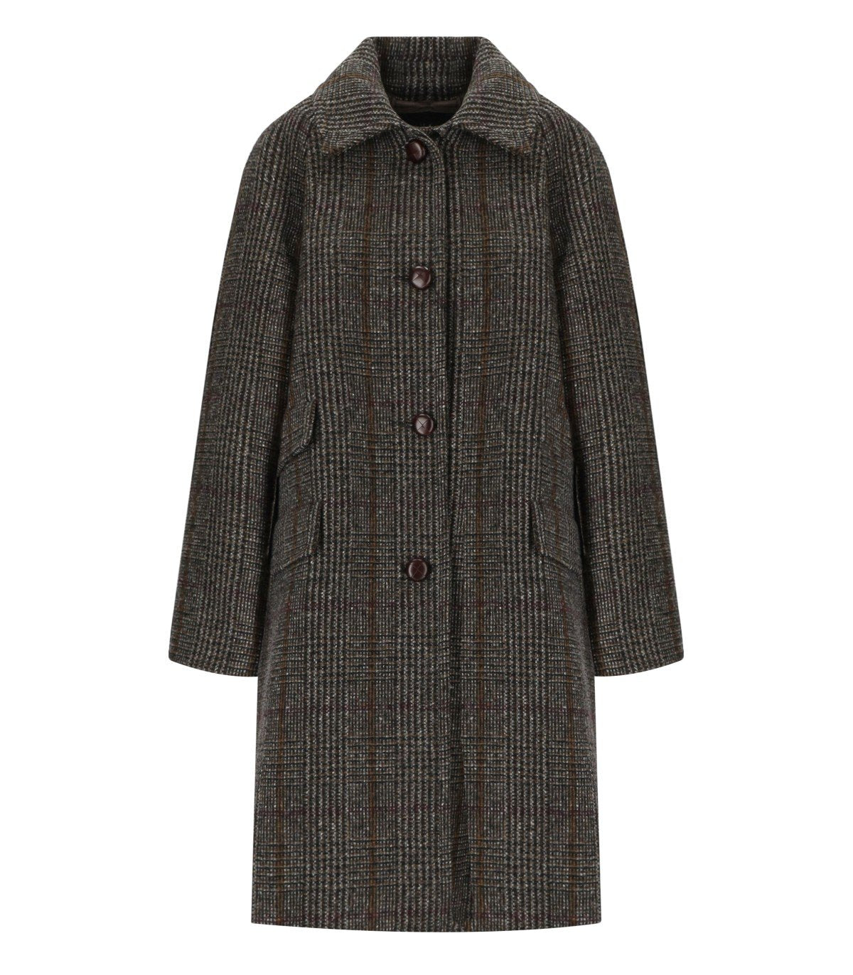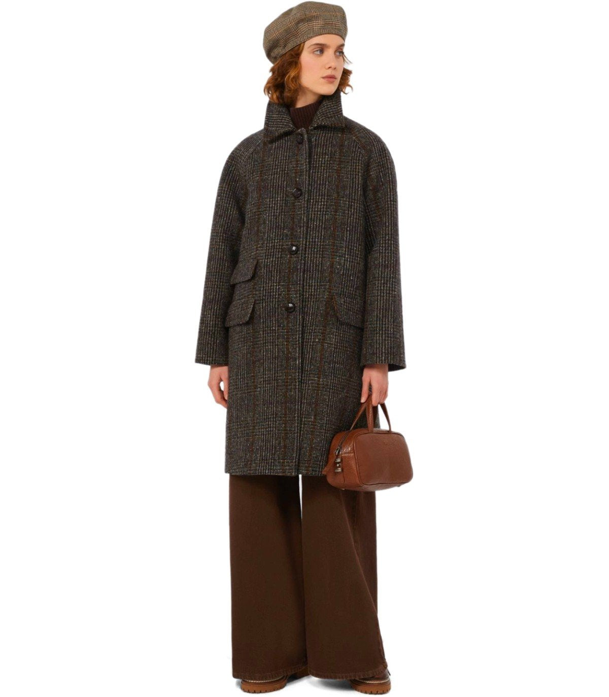 Cappotto Pitone di Max Mara Weekend realizzato in misto lana con fantasia Principe di Galles. Presenta colletto a camica e chiusura con bottoni sul davanti. Foderato, è dotato di tre tasche a filetto con patta applicate frontalmente. Vestibilità regolare.