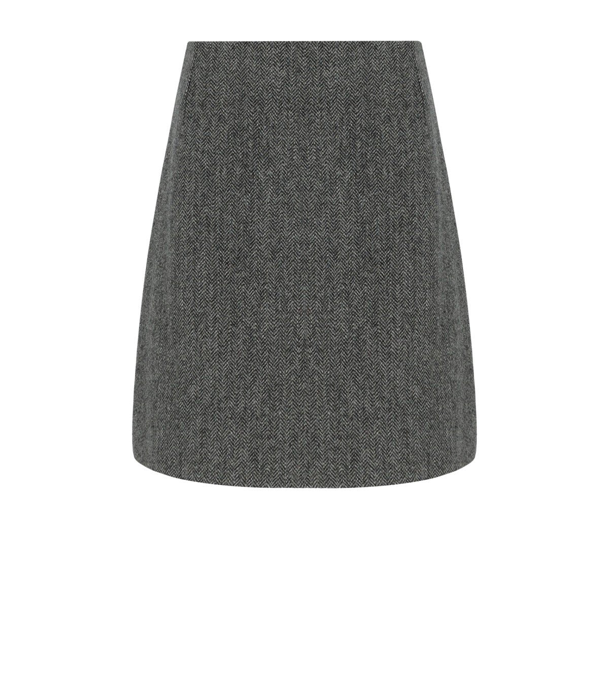 Gonna Marche di Max Mara Weekend realizzata in lana vergine con motivo chevron nei toni del grigio scuro. Foderata, presenta chiusura con zip sul retro e linea svasata. Vestibilità regolare.