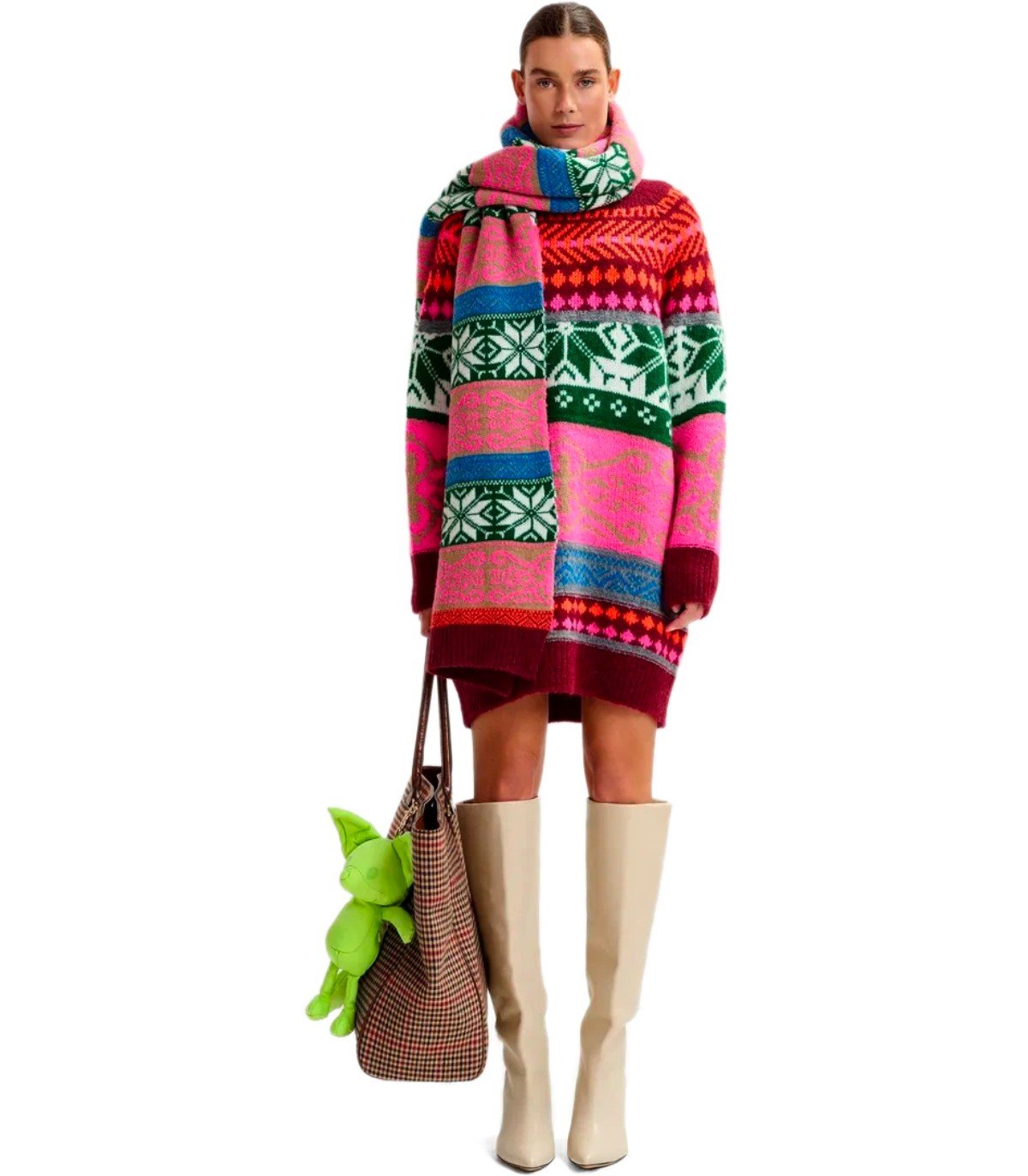 Sciarpa Icharpe di Essentiel Antwerp realizzata in maglia jacquard multicolore. Estremità a costine. Misure: 230x38,5 cm.