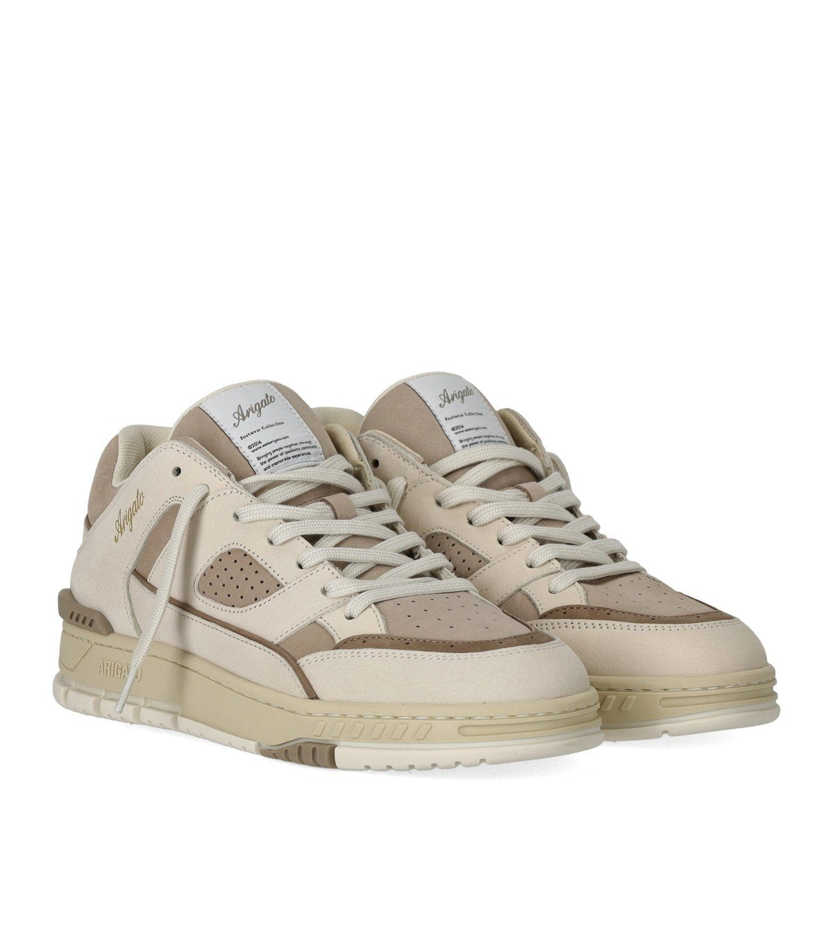 Sneaker Area Lo di Axel Arigato realizzata in pelle nabuck nei toni del beige e del color panna. Punta e lati traforati, fodera e soletta logata in tessuto. Suola in gomma. Altezza 3,5 cm.