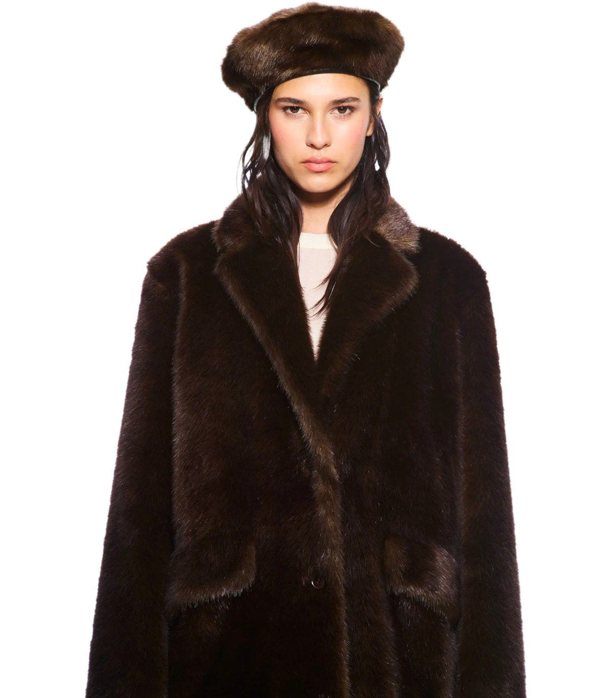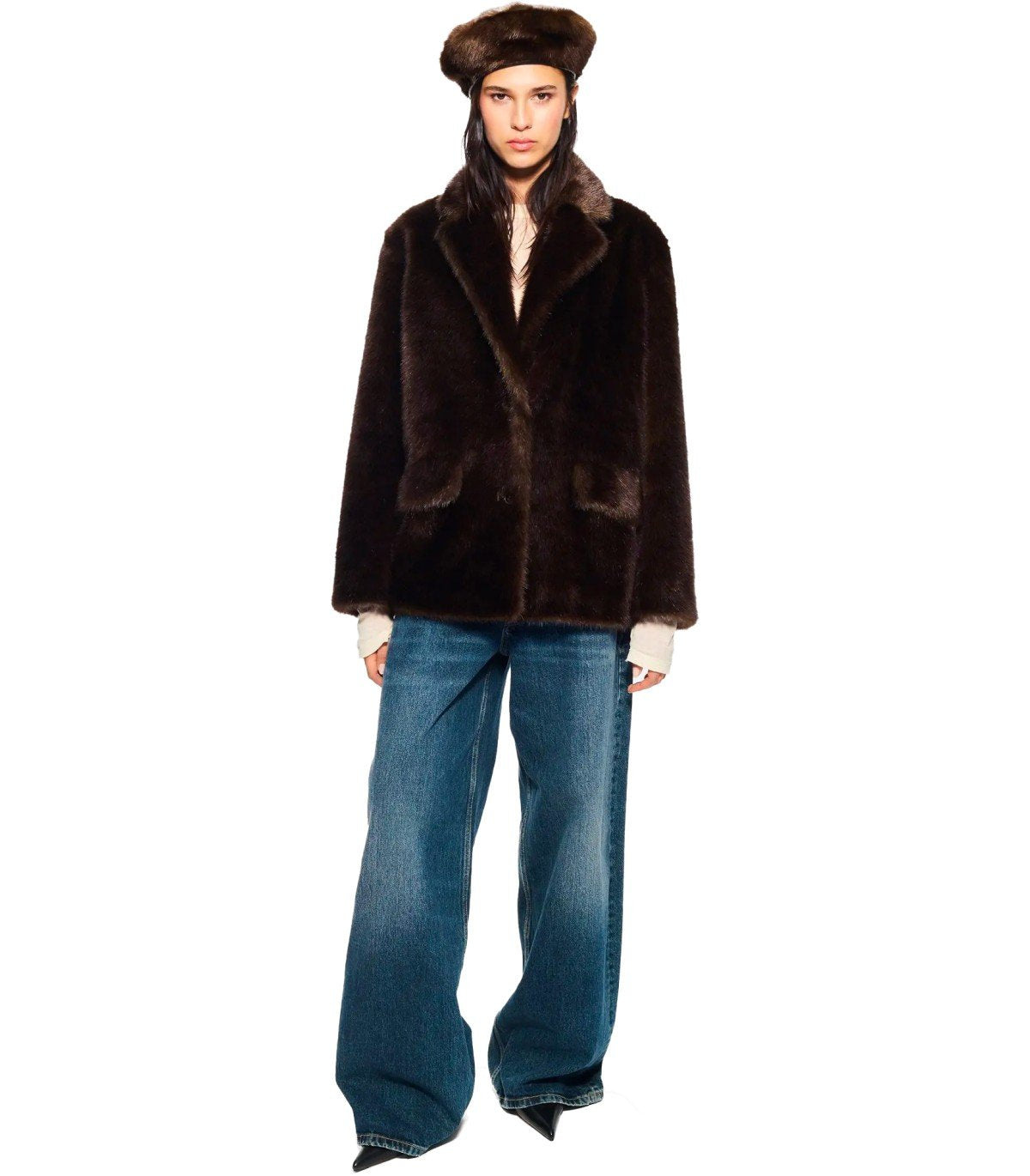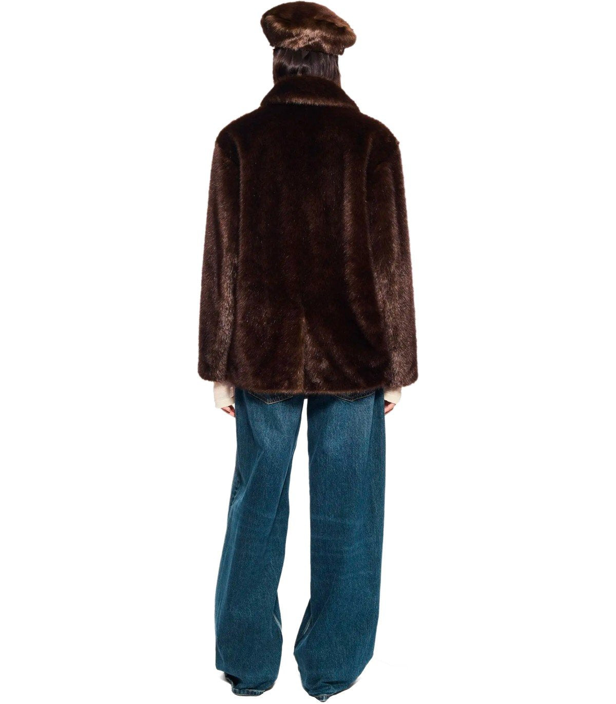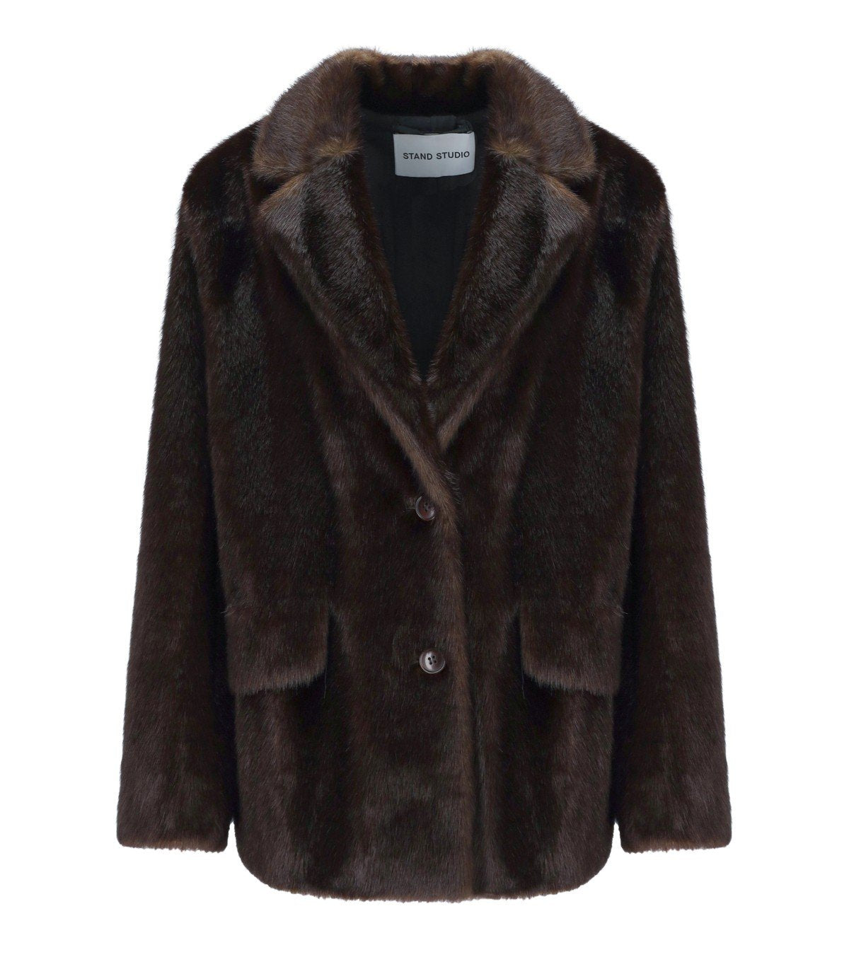 Evyn-jas van Stand Studio, gemaakt van milieuvriendelijke synthetische leer in bruintinten. Geïnspireerd op de blazerstijl, met een reverskraag en een knoopsluiting aan de voorkant. Voorzien van opgestikte zakken met klep aan de voorkant. Gevoerd. Regular fit.